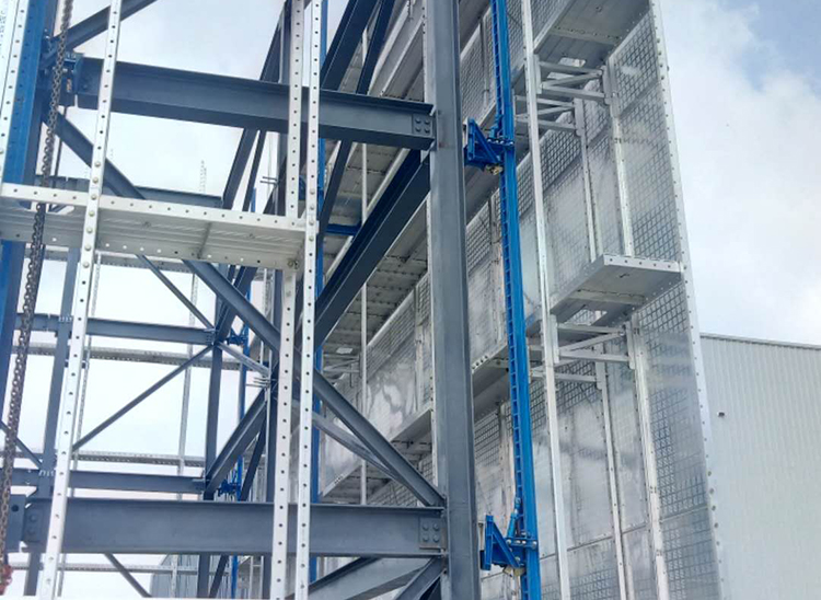 8.豎向主框架為鋼性框架,導軌為豎向主框架內肢,通長設置,可不受建筑層高變化的限制。安裝、拆除方便;使用時,外側及下部防護周全,便于文明施工,且外形規(guī)則、平整、美觀。