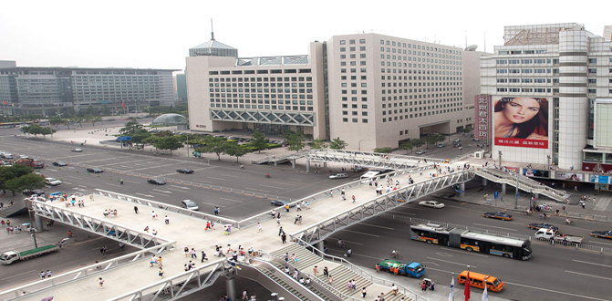 2007年10月,上海在徐家匯建造了首座采用國內(nèi)技術(shù)的裝配式鋁合金人行天橋,拱形外觀設(shè)計(jì),跨越衡山路立交,橋跨34米,橋?qū)?米,自重25噸,載重60噸,正常人流通行量8000人次/小時,高峰人流通行量10000人次/小時。2008年8月,作為迎北京奧運(yùn)重點(diǎn)工程的北京西單商業(yè)區(qū)人行天橋建成運(yùn)營,主橋長80米,寬8米,兩個副橋分別為33米,寬8米,橋的四角分設(shè)4個踏步樓梯。橋梁結(jié)構(gòu)由外資公司承建,主要鋁合金型材均為國內(nèi)生產(chǎn)。在建設(shè)的同時,組織技術(shù)力量編寫了《北京市西單商業(yè)區(qū)人行天橋工程鋁合金上部結(jié)構(gòu)施工質(zhì)量驗(yàn)收標(biāo)準(zhǔn)》(JQB—198—2008),報(bào)北京市建設(shè)委員會備案,為鋁合金結(jié)構(gòu)橋梁施工驗(yàn)收提供了依據(jù)和借鑒。